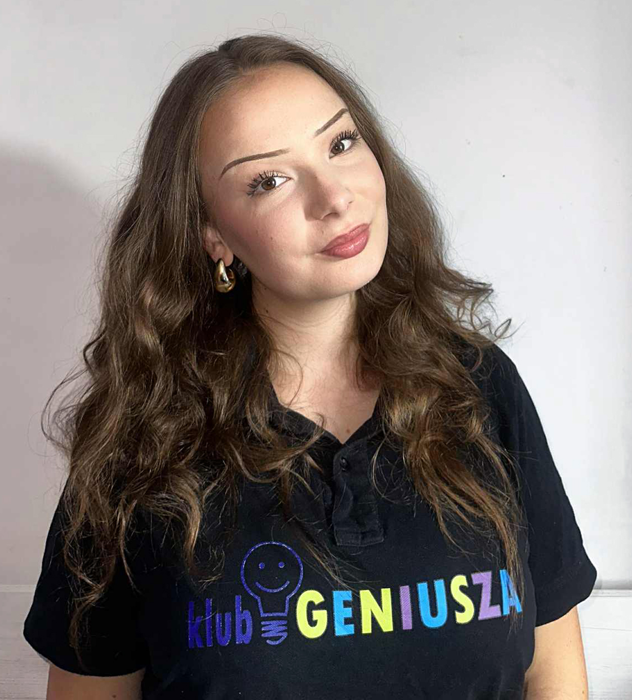 Cześć! Jestem Ola i moją największą miłością jest muzyka. Towarzyszy mi w pracy i poza nią, wznosi mnie i uszczęśliwia. A ponieważ uwielbiam ruch, to, czym się zajmuję na co dzień, jest dla mnie bardzo cennym połączeniem obu pasji. Duży wpływ na to, kim się stałam, miało to, że od dziecka zaczęłam uczęszczać na próby zespołu folklorystycznego "Kamienica". I tak do dziś jestem jego częścią, tańczę i śpiewam, jestem także instruktorem fitness, prowadzę różnego rodzaju zajęcia dla dorosłych. Ukończyłam studia na kierunku Wychowanie Fizyczne. Oprócz tego trenuję pole dance, uwielbiam kawę, zwierzęta, interesuje mnie psychologia i dbanie o urodę. W Klubie Geniusza prowadzę Movement KIDS oraz zajęcia taneczne. Staram się zarazić dzieci miłością do ruchu i pokazać, że może być on dla nas wielką frajdą.